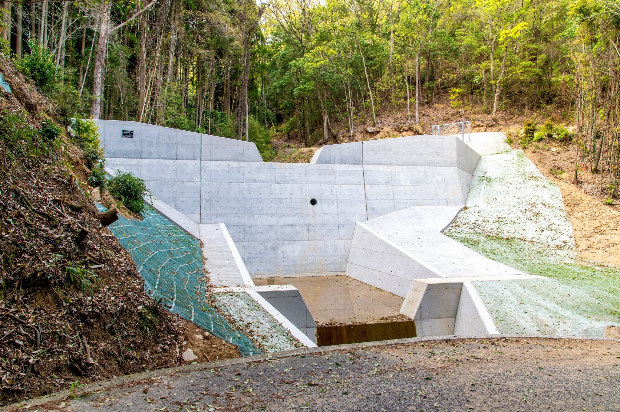 写真を見て、その施設がどのような災害を防ぐために作られたものか答える問題です。写真は砂防ダムで、答えは「土石流」でした。